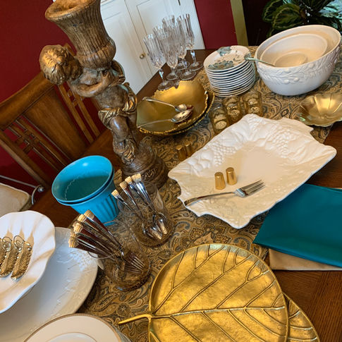 Coffee Cups & Saucers * Table Linen & Napkins * Salt & Pepper Shakers * Butter Dish * Vase